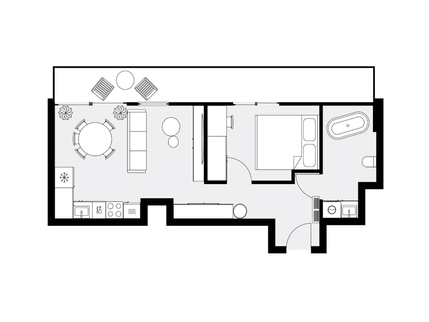 W każdej opcji zakwaterowania zapewniono klimatyzację, prywatną łazienkę oraz kuchnię z lodówką, zmywarką, piekarnikiem i płytą kuchenną. Wyposażenie obejmuje również toster, ekspres do kawy i czajnik.
