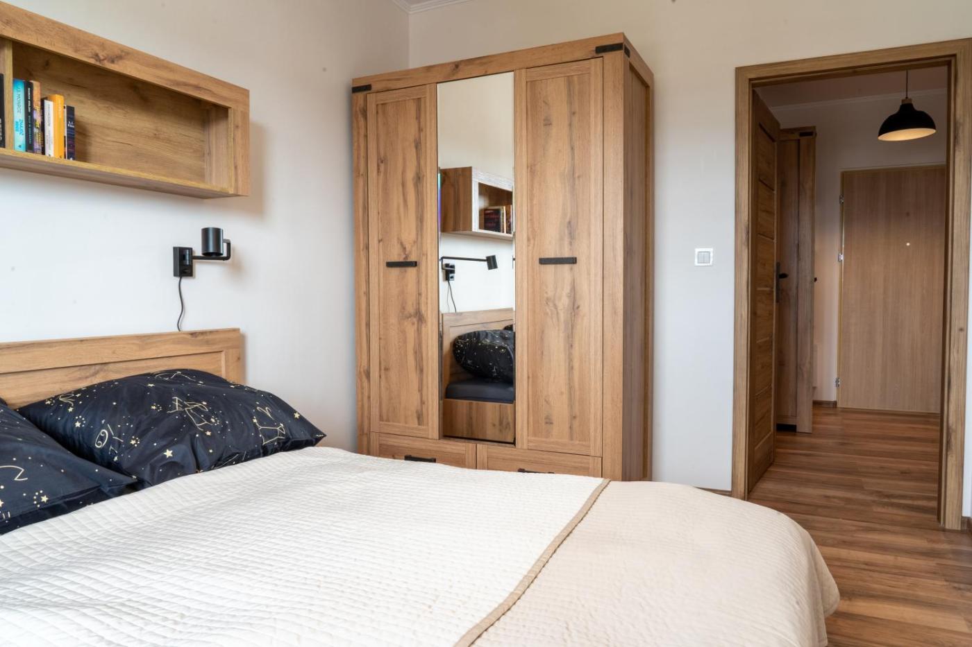 Apartament z 1 sypialnią. Boasting a private entrance, this apartment also includes 1 living room, 1 separate bedroom and 1 bathroom with a shower. Meals can be prepared in the well-fitted kitchen, which is fitted with a stovetop, a refrigerator, a dishwasher and kitchenware. Featuring a balcony with city views, this apartment also offers a washing machine and a flat-screen TV with cable channels. The unit has 2 beds. Apartament - 4 osobowy. Powierzchnia pokoju ok.: 43 mkw.
